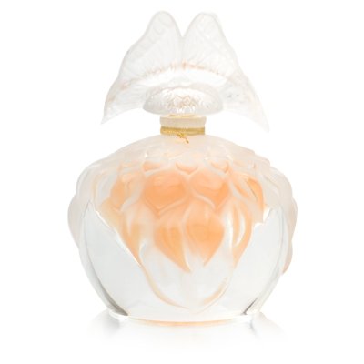 Lalique Butterfly Flacon Collection 2003 Edition After moments spent joyfully flitting about, two butterflies spontaneously set their heart on a freshly opened dahlia. Seduced by its fullness, freshness and flavours, the freedom-loving pair delicately and weightlessly landed in its midst. Wing against wing, they gathered its pollen without a care in the world, briefly forgetting their natural tendency to flutter. Lalique became a butterfly chaser for the occasion and caught them by surprise. Captivated by their characteristic airy grace, the famous crystal house was seized by an immediate desire to sketch them without scaring them away. The two butterflies played along perfectly. Pleased by the idea of going down to posterity, they readily agreed to pose just long enough to become immortalized. As the undisputed stars of this tenth limited edition collector's bottle, the two Lalique Butterflies crown its stopper with elegance. cut in a round shape, the bottle is a double solid crystal bubble coated in dahlia petals. Stunning light effects shine from every side and light up the bottle from within, caturing the radiance of subtle sunlight. Designed in the Lalique creative studio, this bottle once again illustrates the precious know-how of master glassmakers: Hand-blown, the perfect, balanced distribution of crystal, and old-style ground-glass stopper. Following the pattern of every one of the past ten years, the bottle is available in a signed and numbered limited edition. Lalique: A great, timeless classic. The Lalique fragrance opens with a burst of radiant and feminine white flowers: opulent Rose, quivering Jasmine, magnificent Iris, and delicate Wallflower. Very subtle yet very present seduction is evoked by the promise of tangy fruity flavours - with light-drenched pear, the explosive green of Blackc
